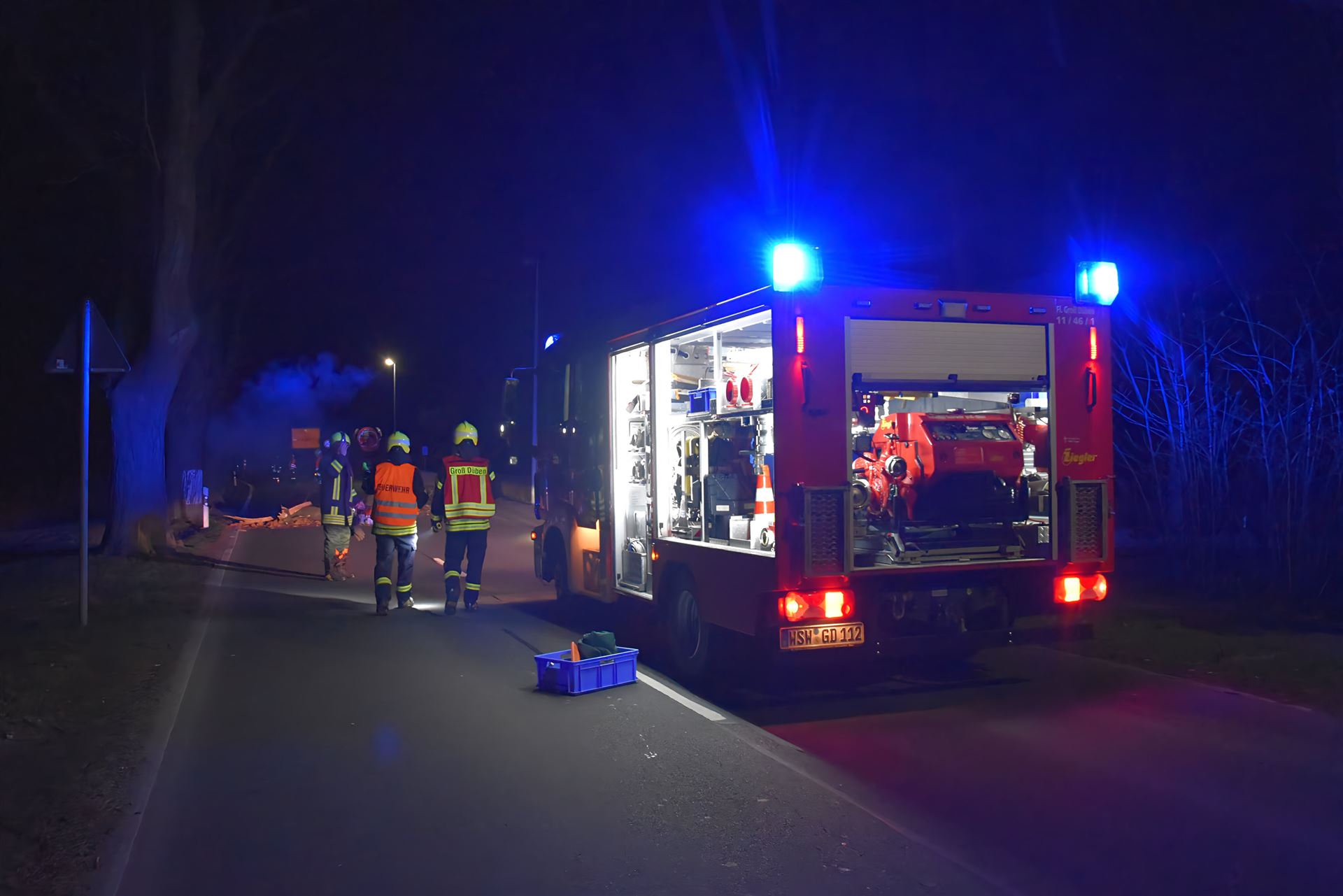 In der Nacht vom 07.04 zum 08.04.2026 um 00.04 Uhr heulte die Groß Dübener Sirene. Die Meldung lautete: Baum auf Straße. Die schnellen Kameraden der FFW Groß Düben hatten die Sache fest im Griff. So wurde Angelegenheit binnen 15 Minuten erledigt und die Leitstelle per Funk über die Sachlage informiert.