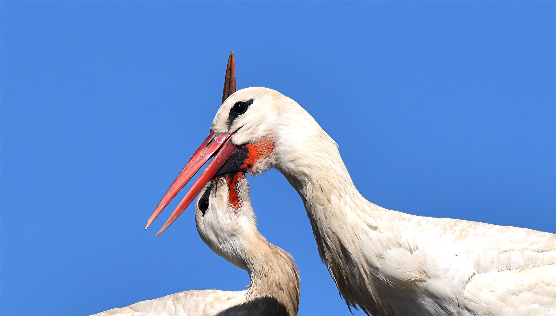 Auspolsterung im Schnabel des Storchenmannes in der Abendsonne